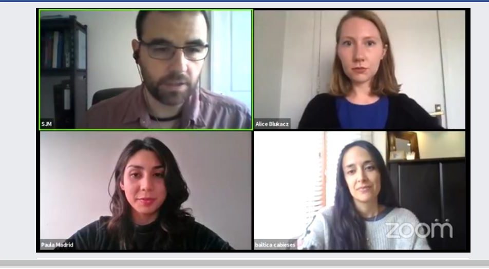 La actividad contó con las palabras de bienvenida de Cabieses, mientras que la sección de preguntas y respuestas fue moderada por Paula Madrid y Alice Blukacz, del equipo de Proessa UDD.
